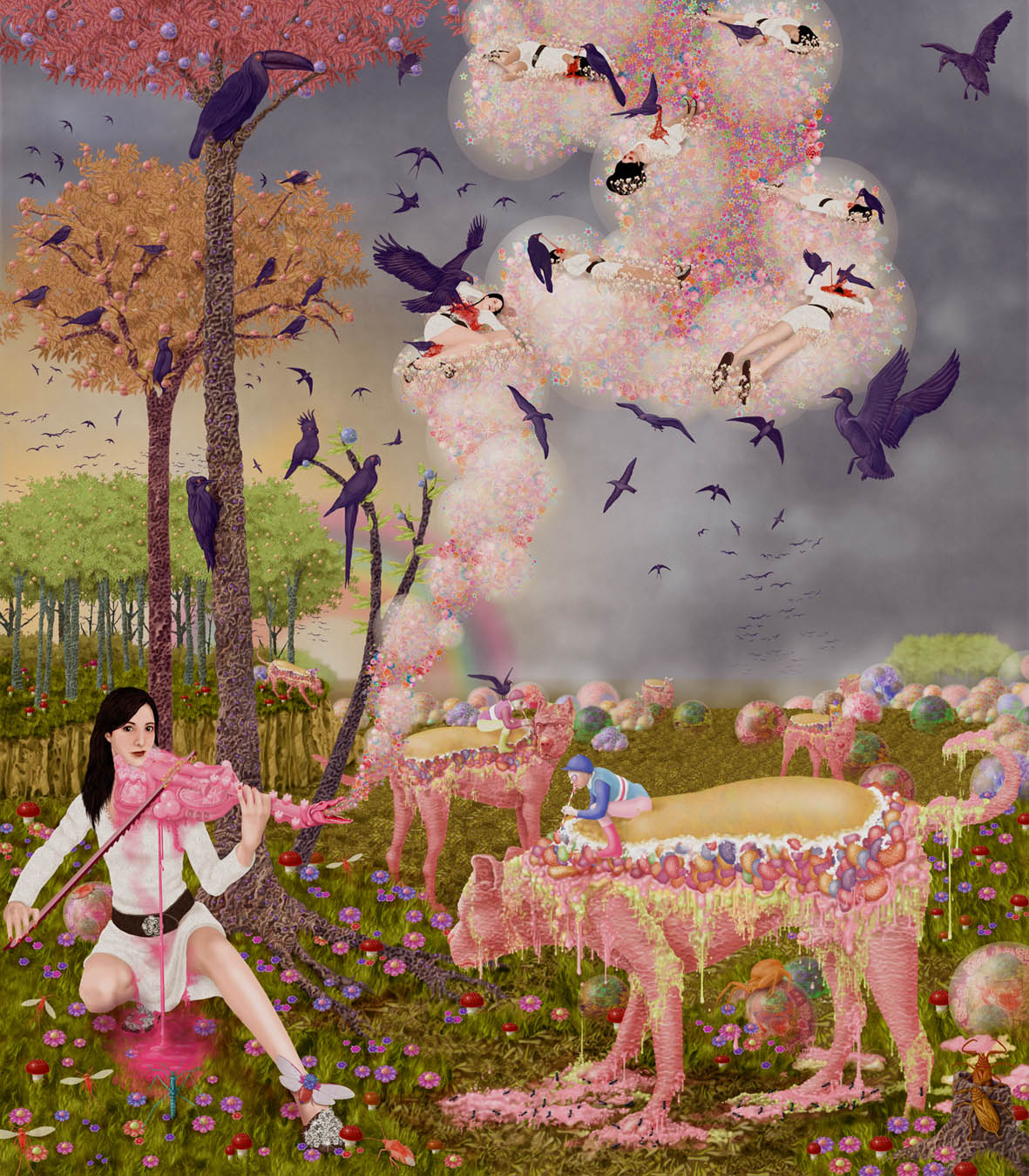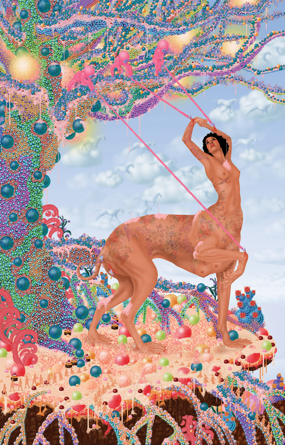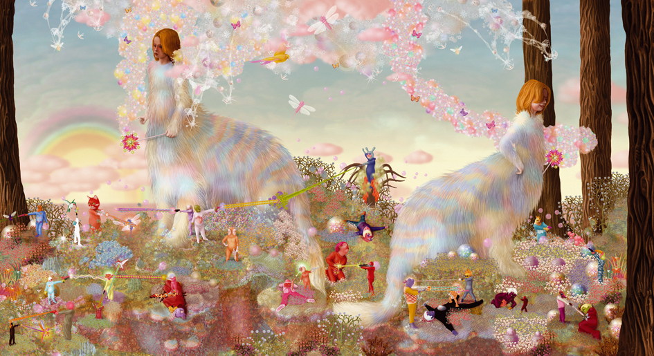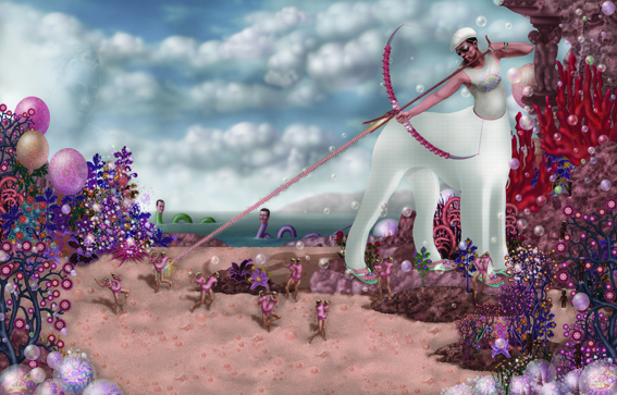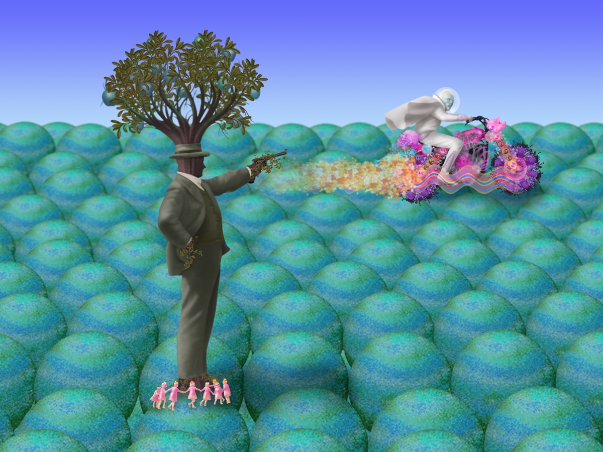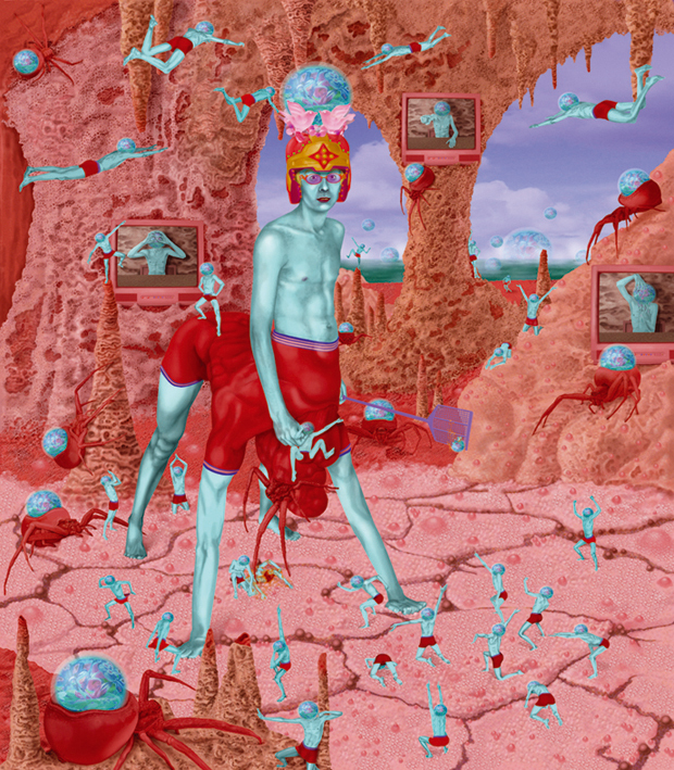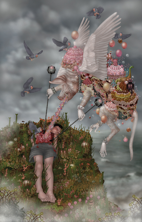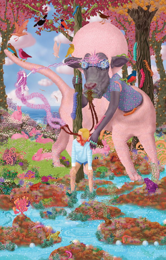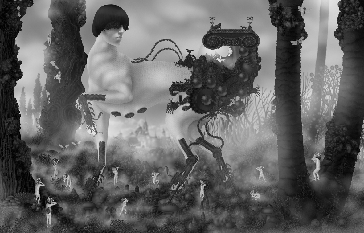 Emile Morel est un artiste français né en 1975. Il pratique un art digital, à la pointe du pixel-art, qui lui permet d’exprimer ses visions fantasmagoriques, peuplées de personnages hybrides. Un monde fantastique qui puise dans un imaginaire médiéval mais également dans l’enfer décrit par Dante dans sa « Divine comédie ». Ce décor est, pour l’artiste, un prétexte à la mise en scène de pulsions primitives bestiales et idylliques d’une mythologie intimiste. Les œuvres d’Emile Morel surprennent par la profusion des détails et leur pouvoir évocateur.